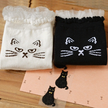 3双包邮日系猫咪蕾丝花边袜子纯棉直筒短袜女甜美堆堆袜学院风袜