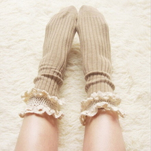 日系过膝袜子花边纯棉袜堆堆袜高筒袜女长袜过膝秋长筒袜女袜原宿