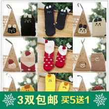 3双包邮韩版珊瑚绒圣诞袜毛巾地板袜卡通图案保暖睡眠袜可爱袜子