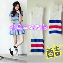 3双包邮日系过膝袜横杠大腿袜学院风长筒女袜子纯棉高筒堆堆袜女
