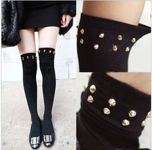 3双包邮纯棉过膝袜秋季新款中筒袜子纯棉韩版时尚女士短袜铆钉潮