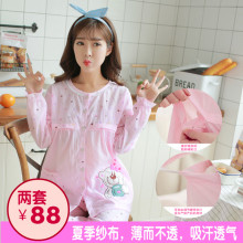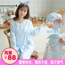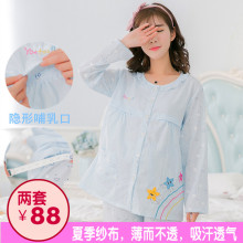 纱布月子服夏季孕妇睡衣产后薄款哺乳衣产妇家居服长袖喂奶衣套装