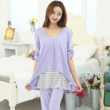 纯棉三件套月子服夏季薄款大码孕妇睡衣产妇产后哺乳衣喂奶服套装
