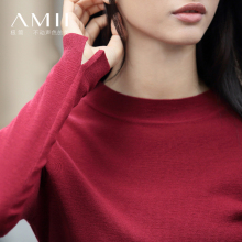Amii女士羊毛衫女套头修身半高领打底衫秋冬薄款长袖大码针织衫