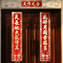 结婚新房用品婚庆对联布置小号大门婚联大号规格植绒金面门联中号