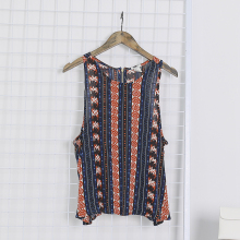 [罗列]欧美单民族风印花 凉快垂坠后拉链宽松背心女雪纺衫新款