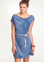 [罗列]北欧dan 新款 森女系麻绳腰带水洗做旧纯色宽松连衣裙女