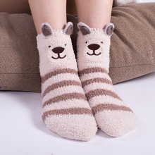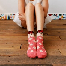 CARAMELLA秋冬季拉毛加绒可爱卡通加厚女士袜子女保暖珊瑚半边绒