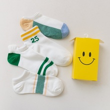 CARAMELLA夏季女士运动型船袜棉袜透气二条杠数字短袜子低帮袜子