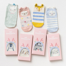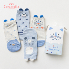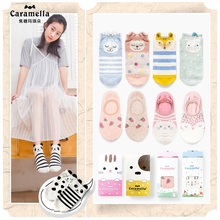 CARAMELLA2017春夏2双装女士船袜礼盒卡通动物AB对袜棉袜女袜子
