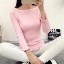 2015冬装新款毛衣针织衫外套女装套头长袖打底衫女上衣纯色荷叶边