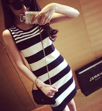 2015春装新款韩版包臀背心裙显瘦条纹修身吊带 打底针织连衣裙女
