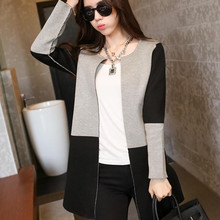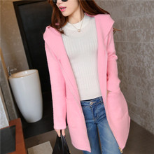 莎欧2015春装新款韩版中长款女装针织衫拉链帽子开衫外套毛衣