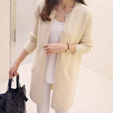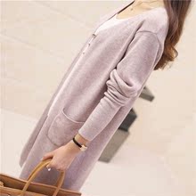 2016新款秋季女装中长款开衫百搭纯色外搭韩版宽松毛衣外套针织衫