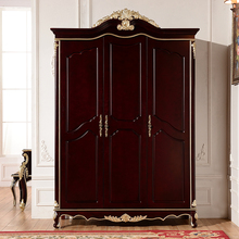 风飞扬 欧式木质衣柜新古典法式田园二三四门大衣柜酒红描金衣橱