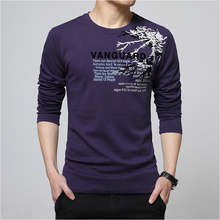春季印花T恤韩版简约打底衫男立领长袖T恤潮青年大码男装棉质体恤