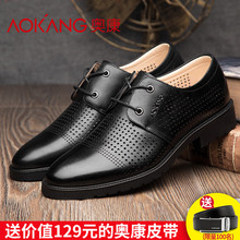 奥康男鞋夏季男士镂空商务休闲凉皮鞋男透气系带中老年真皮爸爸鞋