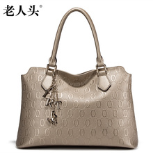 老人头包包女包新款2017 牛皮锁链压纹手提单肩包OL