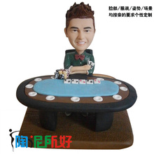 DIY泥人泥塑 真人陶偶玩偶 人像蜡像软陶公仔人偶定制(麻将桌背景