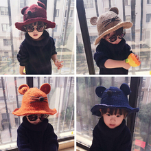 新款韩版秋冬儿童帽子毛线小猫咪渔夫帽 女童马海毛盆帽潮款童帽