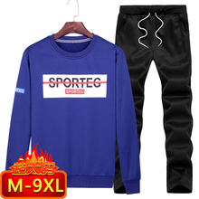 9XL加肥加大春装长袖长裤卫衣套装男大码运动套装套头衫胖子肥佬