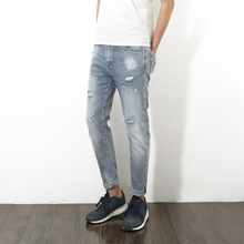 2017韩版潮流夏季薄款破洞显瘦修身小脚浅色牛仔裤男青年潮流裤子