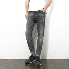 2017韩版潮流薄款破洞黑灰色烟灰色夏季显瘦有型小脚男牛仔裤修身