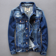 春季韩版潮流水洗深蓝色破洞牛仔外套男修身大码牛仔褂夹克外套男