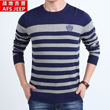 战地吉普秋季薄款圆领毛衣男青年套头大码长袖t恤针织线衣打底衫