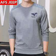 AFS JEEP春季薄款男青年圆领长袖T恤男士纯色宽松直筒大码打底衫