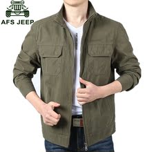 战地吉普男装夹克男士中年春秋薄款立领大码外套爸爸装茄克衫上衣