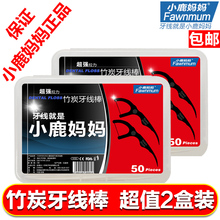 小鹿妈妈竹炭牙线顺滑牙线棒牙签线黑牙线弓形安全牙签2盒包邮