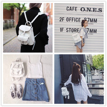2016韩版时尚简约新款白色双肩包女潮流学院风休闲pu背包旅行包包