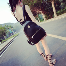 双肩包女韩版2016新款黑色时尚女式背包学院风纯色旅行小书包女潮