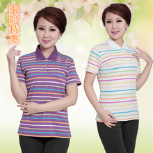 中年夏装短袖翻领t恤中老年妈妈女装加肥加大码纯棉休闲运动上衣