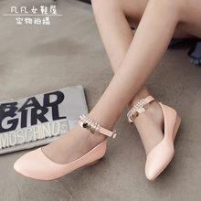 2017春季新款春季单鞋甜美舒适平底单鞋少女学生鞋串珠搭扣淑女鞋