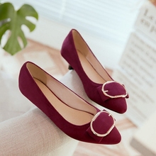 2017春季新款尖头浅口低跟中跟单鞋高跟女鞋大码40-43码细跟小码