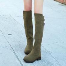 2017春季新款欧美磨砂皮带扣高筒靴子女长靴低跟平底绒面女靴单靴