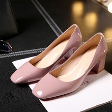 2017春季新款舒适粗跟中跟高跟女鞋单鞋方口浅口韩版工作鞋漆皮
