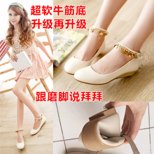 2017春季新款甜美淑女鞋坡跟单鞋低跟平底搭扣女鞋软底牛筋底鞋子
