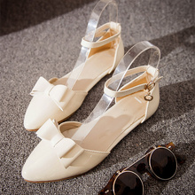 2015包头凉鞋女春 平底平跟学生甜美系女鞋蝴蝶结搭扣凉鞋少女鞋