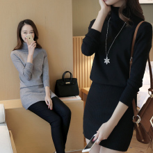 2016春中长款毛衣高领长袖修身加厚针织衫包臀打底衫连衣裙女上衣