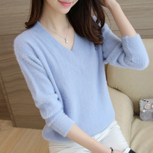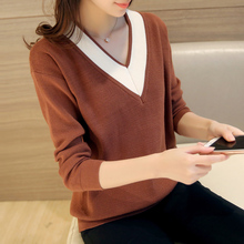 鸡心领毛衣女春款韩版宽松套头低领内搭V领长袖百搭打底针织衫