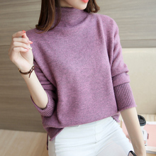 长袖短款打底衫毛衣女套头宽松针织衫半高领秋冬季加厚外套女装潮