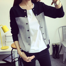 江南莱雅2016春秋新款韩版时尚棒球服女装单排扣宽松针织开衫外套