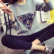 9色4码2016春秋新女装圆领宽松韩版流苏字母针织套头毛衣打底衫