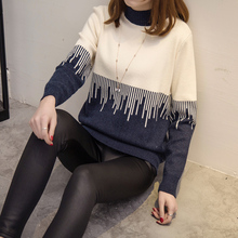 秋冬毛衣女套头加厚宽松流苏针织衫中长款圆领民族风打底衫毛衣裙