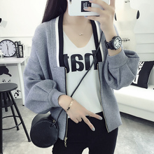 2016春秋新款韩版短款圆领长袖百搭宽松女装针织衫开衫毛衣外套