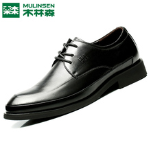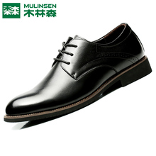 木林森 2017秋季新款男鞋 平跟中商务正装系带青商务圆头耐磨皮鞋