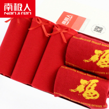 南极人女士本命年礼盒装大红色棉质三角内裤中腰女结婚红内裤袜子